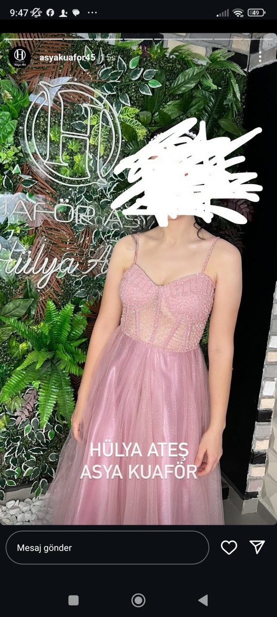 Pembe Dantel Detaylı Uzun Abiye Elbise