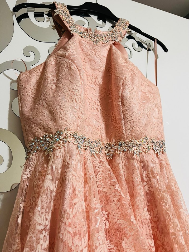 Pembe Dantel İşlemeli Uzun Abiye Elbise