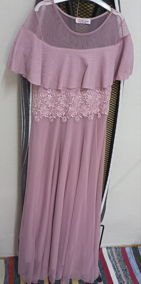 Pembe pastel tonlarında, kolsuz fakat üzerinde kumaş olan uzun elbise. Bel kısmında işlemeli dantel detayı bulunan, bol kesim ve klasik şıklık sunan abiye elbise. Ürünü sadece 1 kere giydim ve gerçekten çok şık duruyor.♡