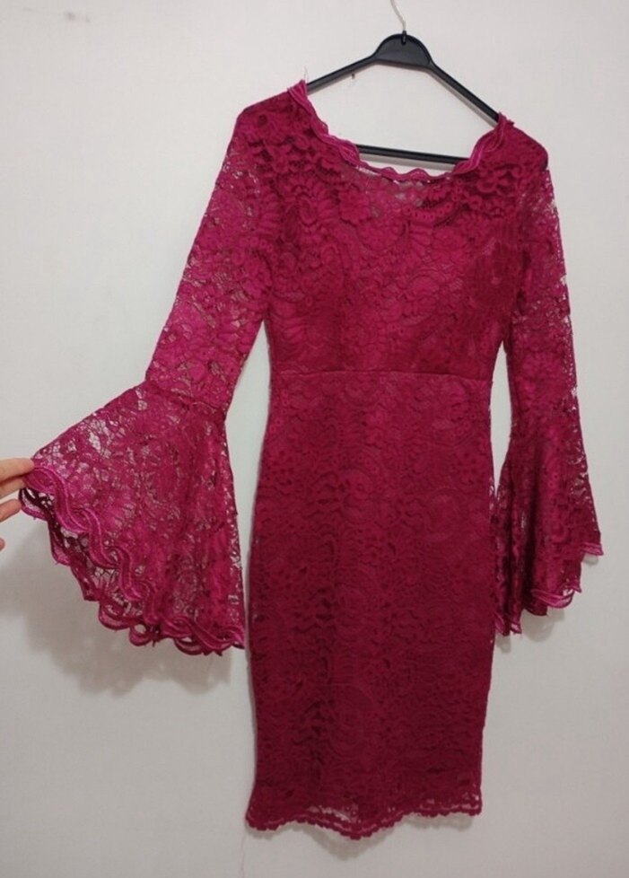 Pembe Dantelli arkası fermuarlı balık abiye elbise