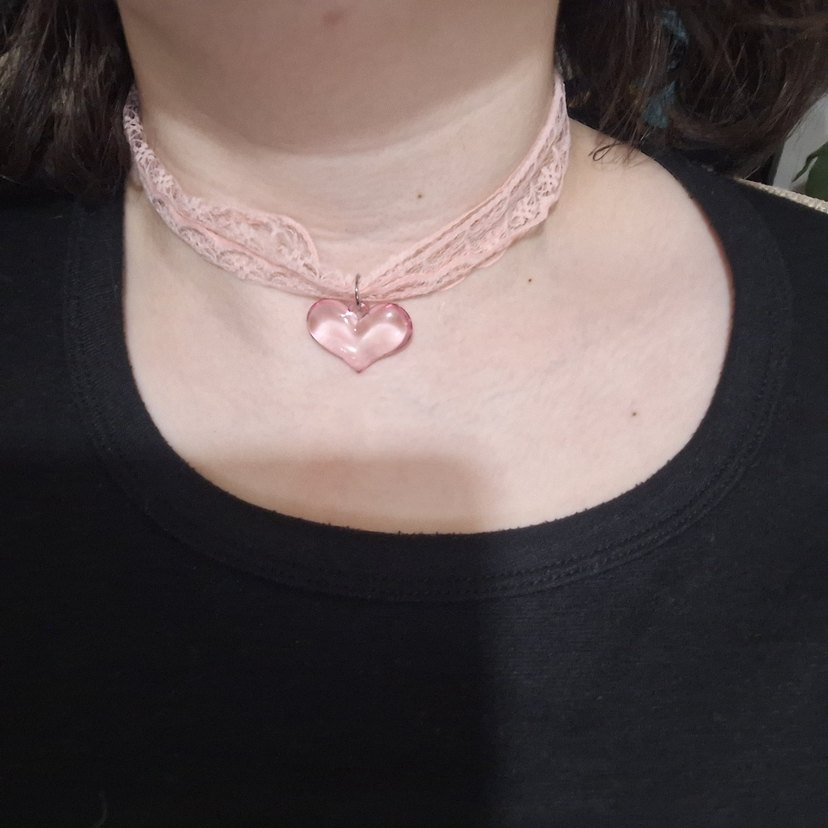Pembe dantelli kalpli kolye/choker