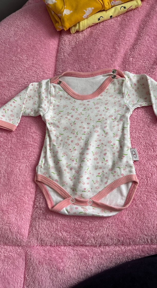 Uzun kollu ve yuvarlak yakalı bu bebek body, yumuşak kumaştan yapılmış olup narin dantel detaylara sahiptir. Pastel pembe tonlarında, hafif çiçek desenlidir ve kolay giydirme için çıtçıtlıdır.