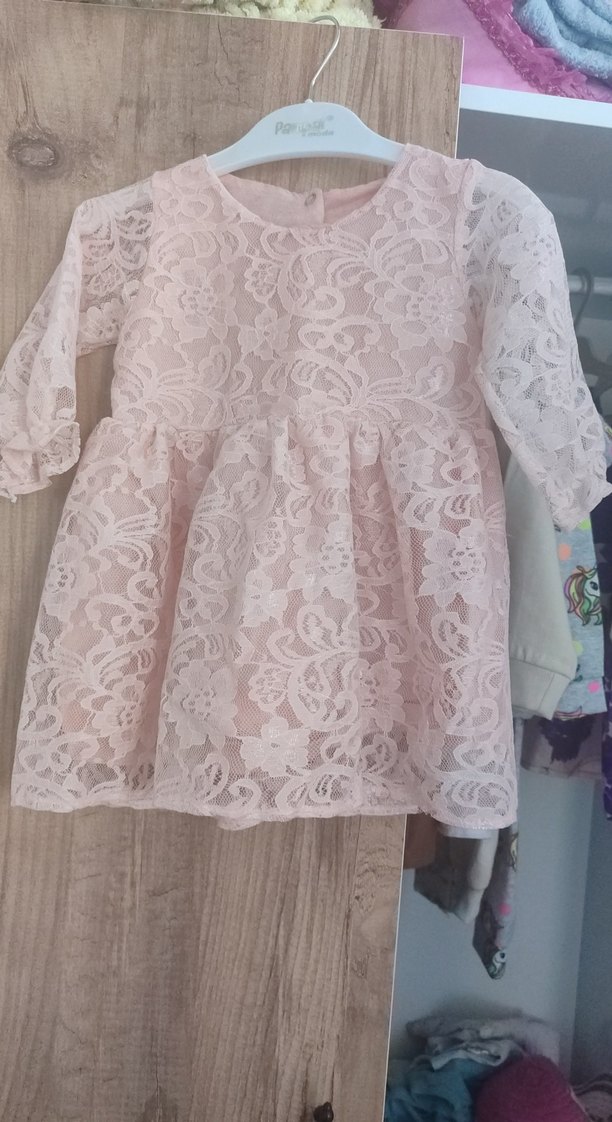 Pembe Dantelli Uzun Kollu Kız Elbisesi