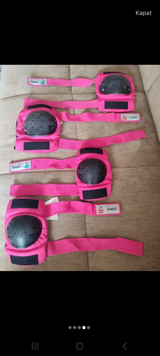Pembe renkli, Velcro bantlı ve yumuşak polar astarlı motosiklet dizlikleri. Renkli baskılı desenli, biker ve athleisure tarzına uygun. ️