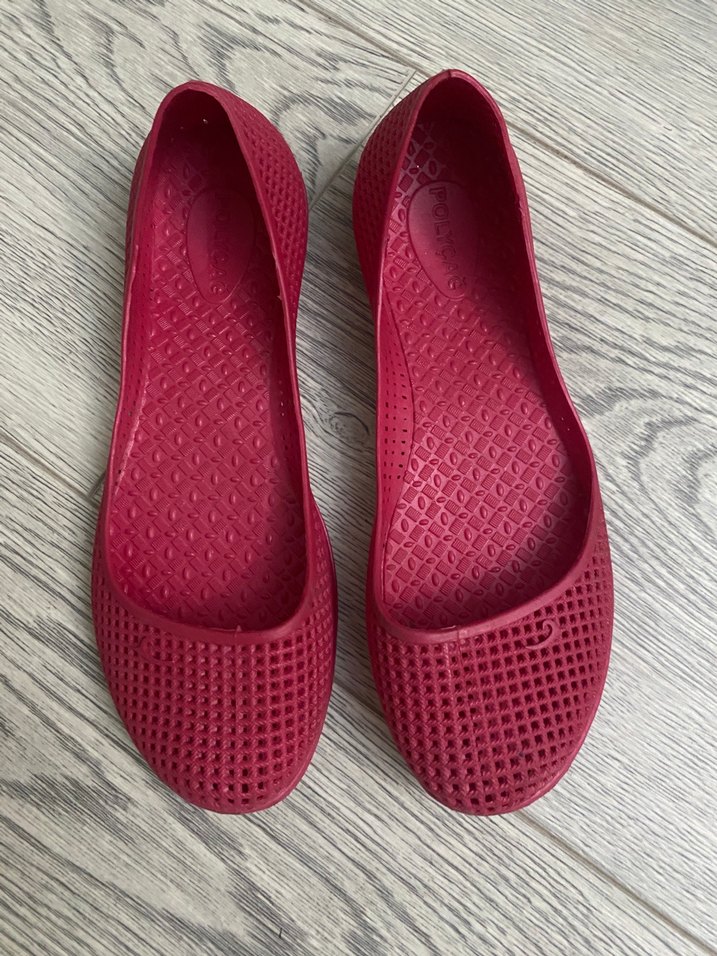 Kauçuk malzemeden yapılmış, pembe renkli, çocuk deniz ayakkabısı.