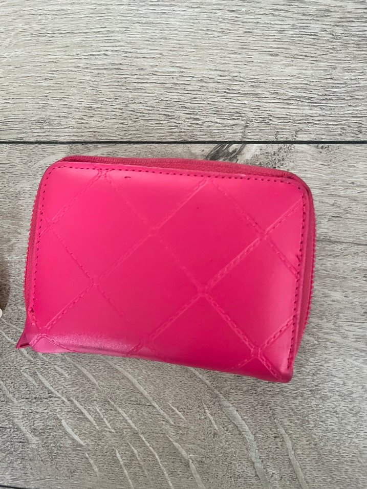 Pembe deri kadın cüzdan, fermuarlı kapanışa ve desensiz, düz tasarıma sahiptir, günlük kullanım için uygundur.