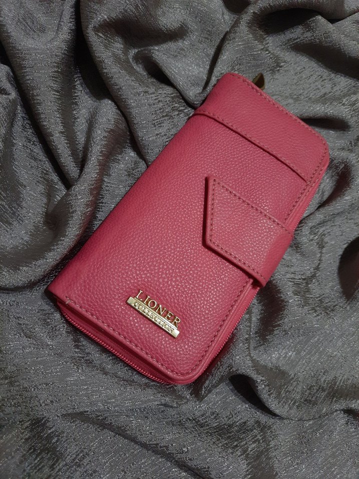 Pembe deri kadın cüzdanı, fermuarlı kapanış ve ön kapaklı cep ile günlük kullanıma uygun, renkli ve street wear tarzında. sıfır ürün açma kapama aparatı aşınma mevcut kullanıma engel değil fotoğrafta görüldüğü gibi