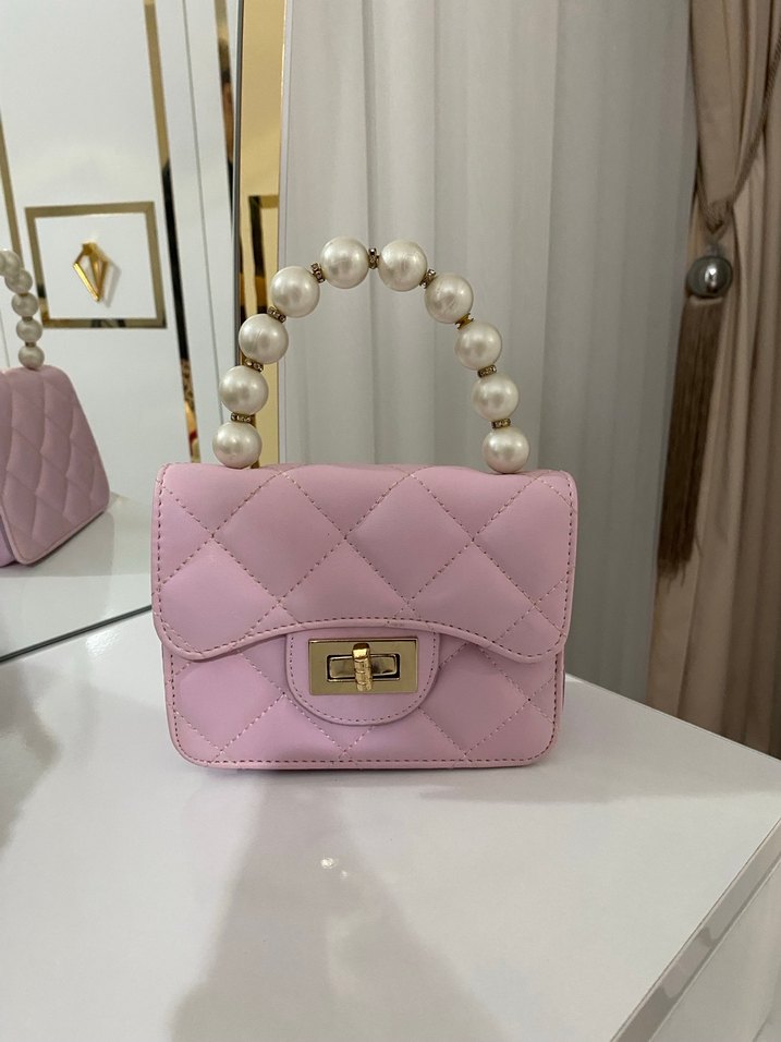 Pembe Deri İnci Detaylı Kadın Çanta