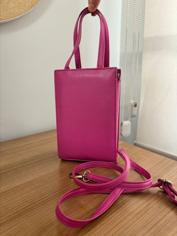 Pembe deri kadın çanta, minimalist tasarıma sahip ve fermuarlı. Günlük kullanım için çağdaş tarzda, trend belirleyicilere uygun.