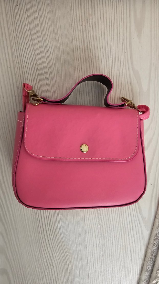 Modern klasik tarzda, tokalı saplı, düz pembe deri kadın çantası. Renkli ve Paris esintili, günlük kullanıma uygun bir model.