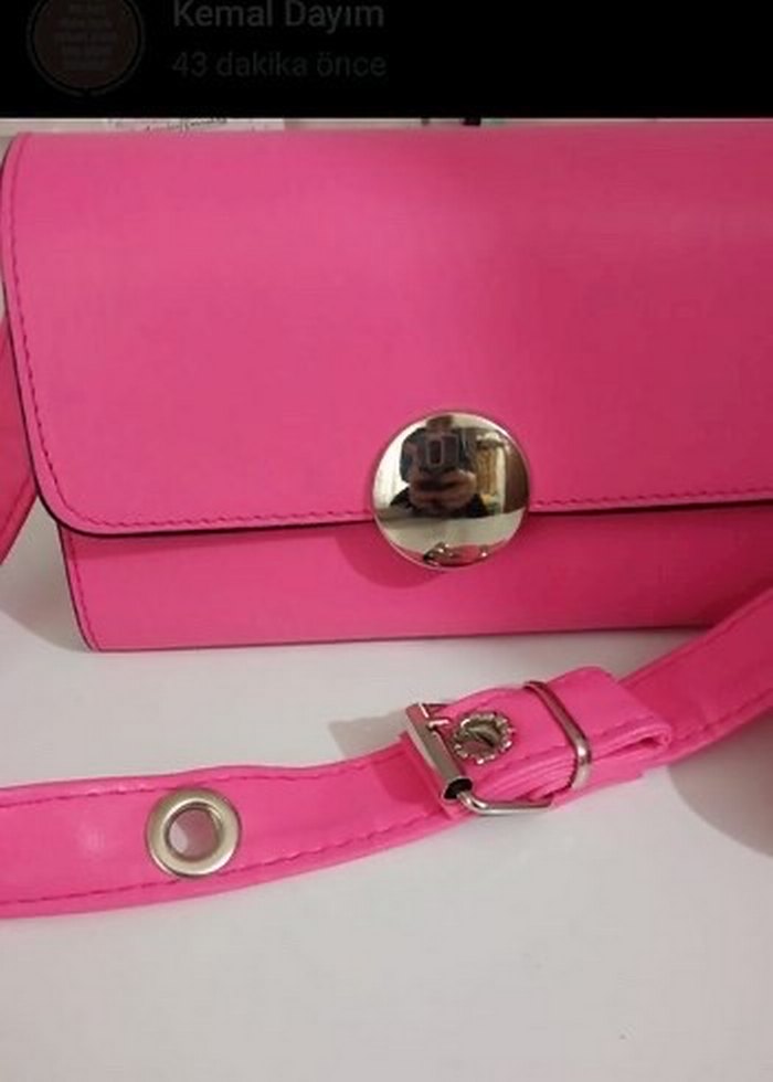 Pembe Deri Kadın Çanta Tokalı