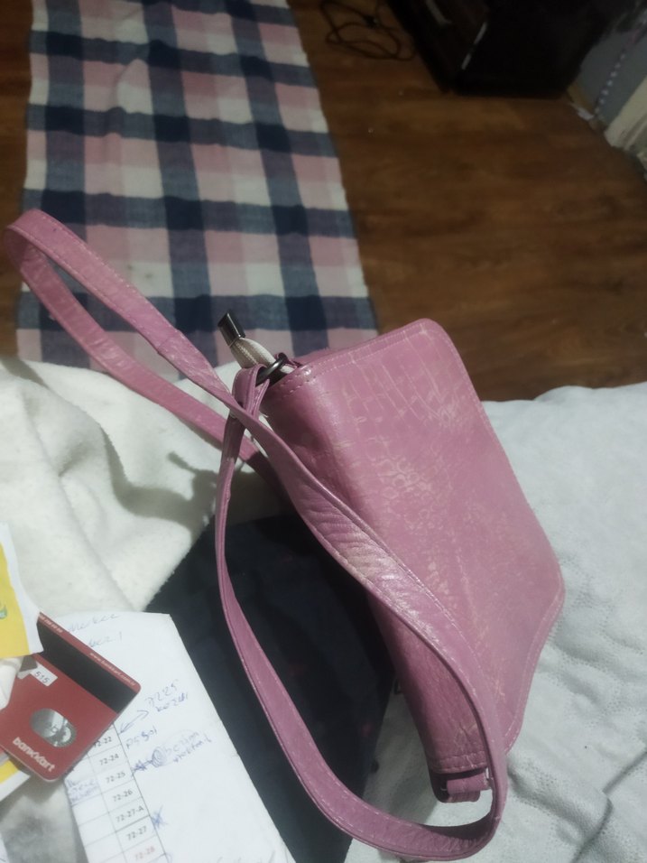 Pembe Deri Kadın Çanta Tokalı