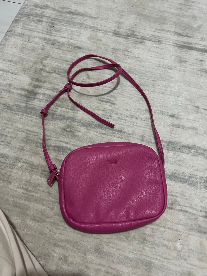 Pastel pembe deri çapraz çanta, fermuarlı ve minimal. Bir kaç kez kullanıldı tertemiz