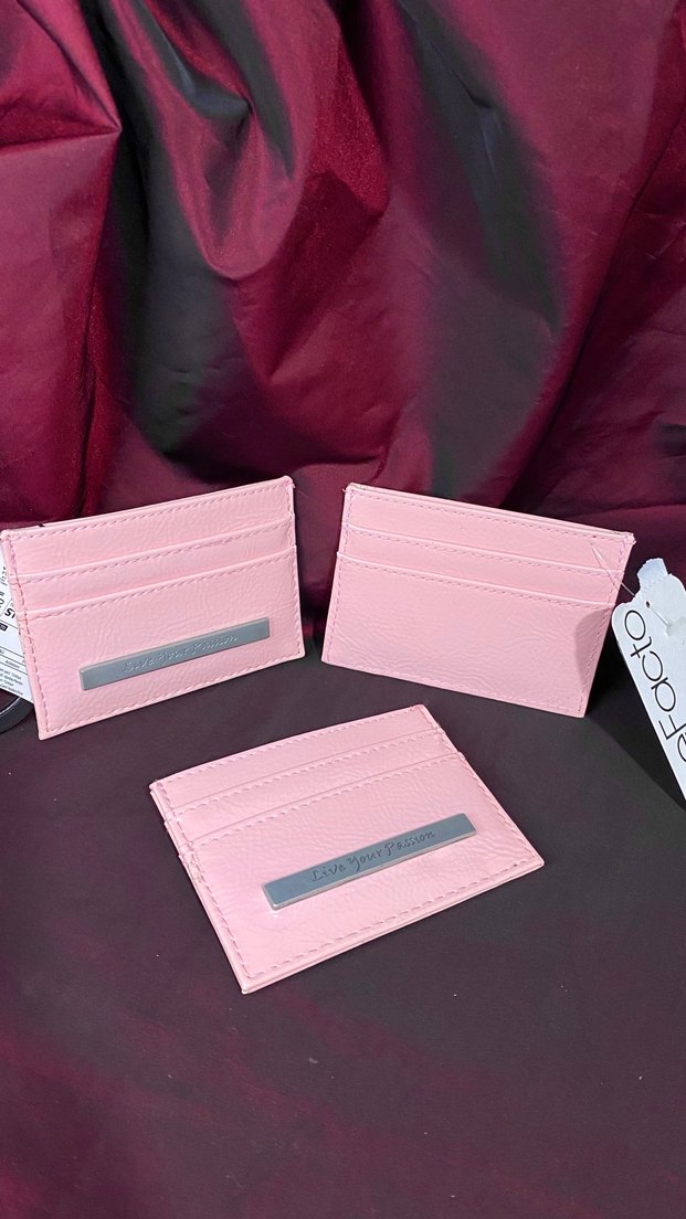 Pastel pembe renkte deri kadın cüzdanı, baskılı desen ve velcro kapama özelliğine sahiptir. Günlük sokak stili için uygun, sade ve temel tasarımlıdır.