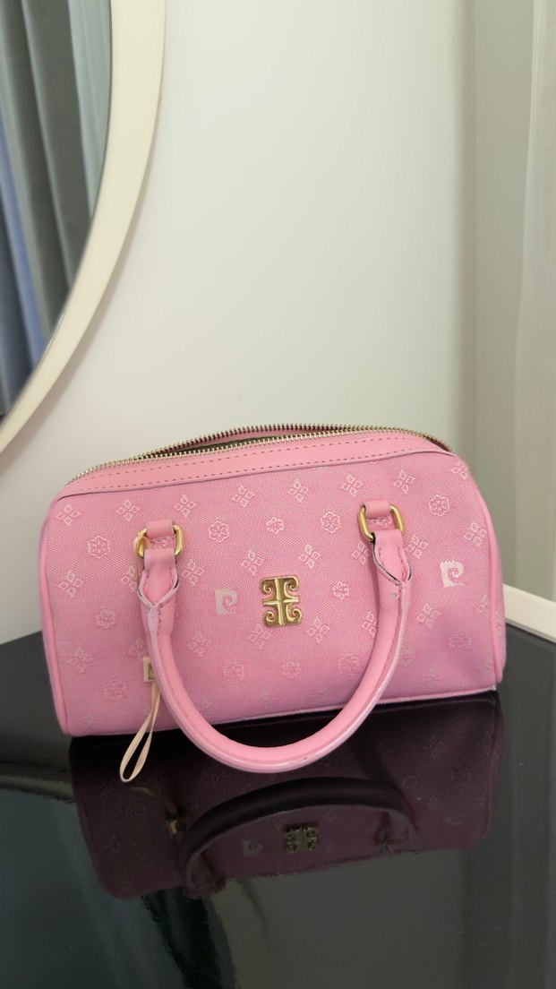 pastel pembe deri kadın el çantası. Altın renkli detaylar ve çift saplı, günlük sokak stili için uygundur. Hiç kullanılmadı fazlalıktan satışta