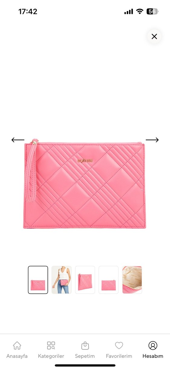 Pastel pembe deri el çantası, kareli desen ve fermuarlı kapama ile modern klasik ve cesur Paris tarzını yansıtıyor. Günlük kullanım için uygun. Etiketli üründür