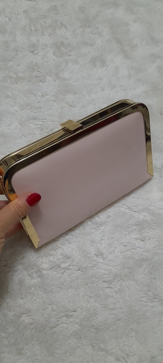 Pembe deri dış yüzeyi ve altın metal detayları ile zipli kapamaya sahip kadın portföy çanta, klasik zarafeti modern tarzla buluşturur. Günlük kullanıma uygundur.