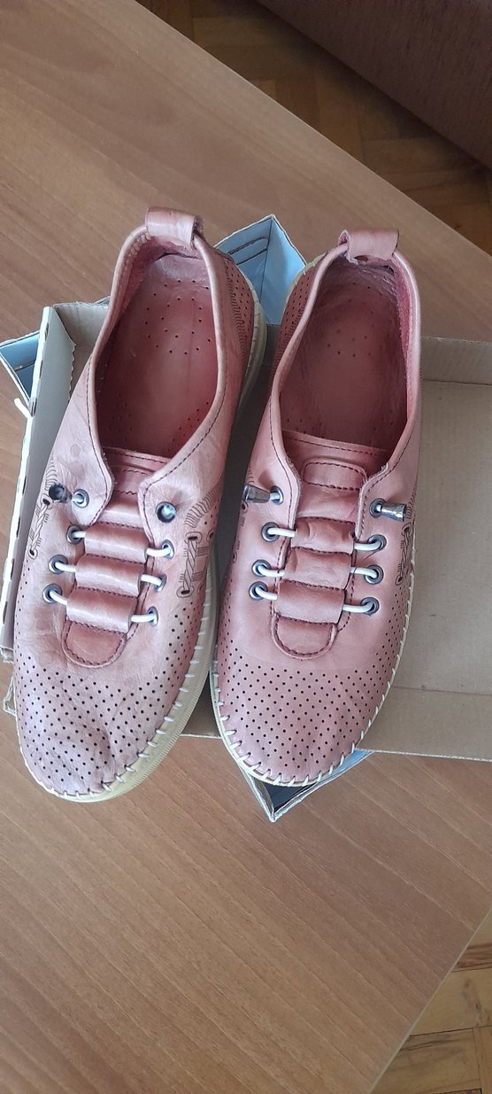 Pembe deri, bağcıklı, delikli detaylara sahip, düz tabanlı kadın spor ayakkabısı, pastel tonda ve rahat athleisure stilinde.