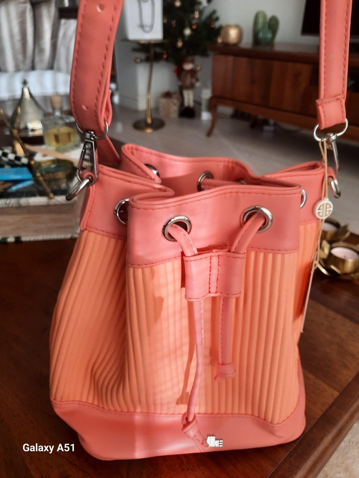 Pembe deri pilili detaylara ve bağlamalı kapağa sahip kadın omuz çantası, Paris esintili gündelik sokak stili için uygundur.