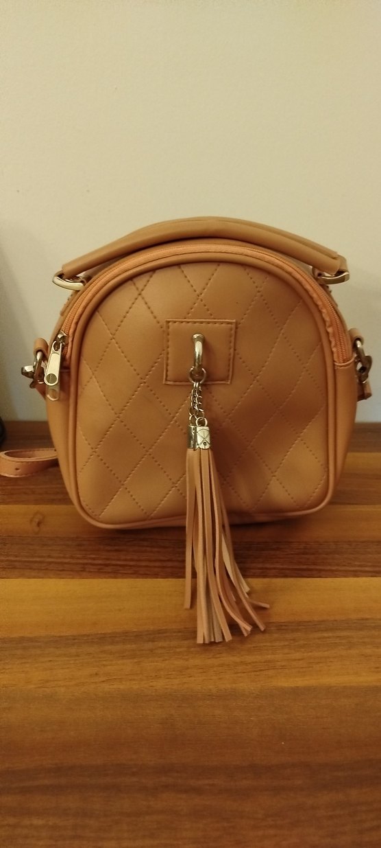 Pembe deri, parlak yüzeyli kadın çantası, püskül detayı ve kapitone deseniyle bohem tarzda. Günlük kullanım için uygundur.