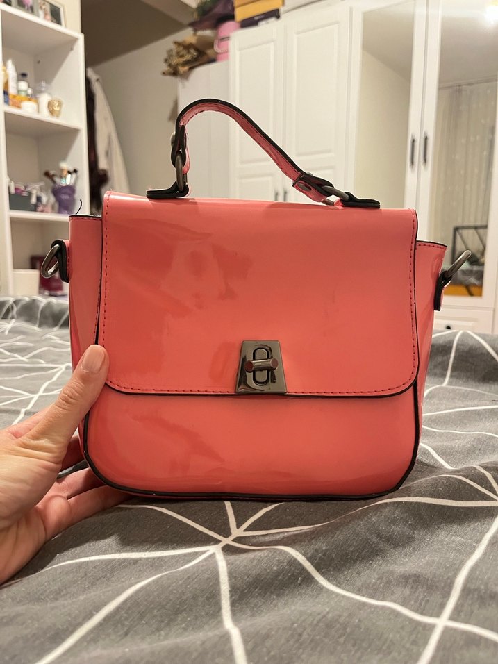 Pembe deri kadın çanta, tokalı kapama ve üst saplıdır. Pastel tonları ve çağdaş stiliyle günlük kullanıma uygundur.