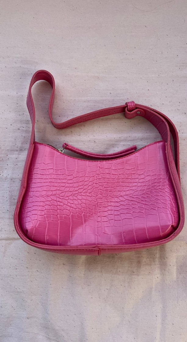 Pembe Deri Yılan Desenli Kadın Çanta - Görsel 1