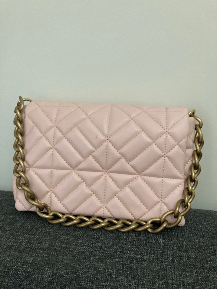 Pembe deri çanta, zincir detaylı ve kapitone desenli. Modern klasik tarzı, trend casual görünümle buluşturuyor. Günlük kullanım için uygun.