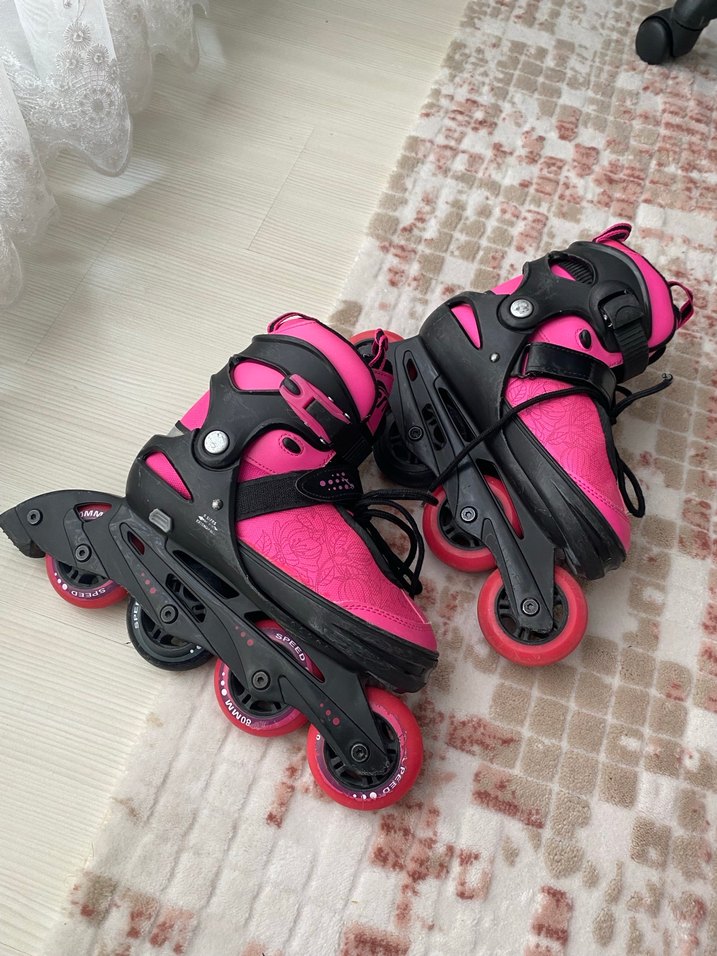 36-40 numaraya kadar genişleyebiliyor düğmesi var 4 tekerlekli 3 tekerliklere göre daha konforludur yurt dışından geldi göründüğü gibi çizikleri var ama gayet iyi durumda az kullanıldı çantası durmuyor fiyatını uygun tutucam elden çıkartmak için satıyorum