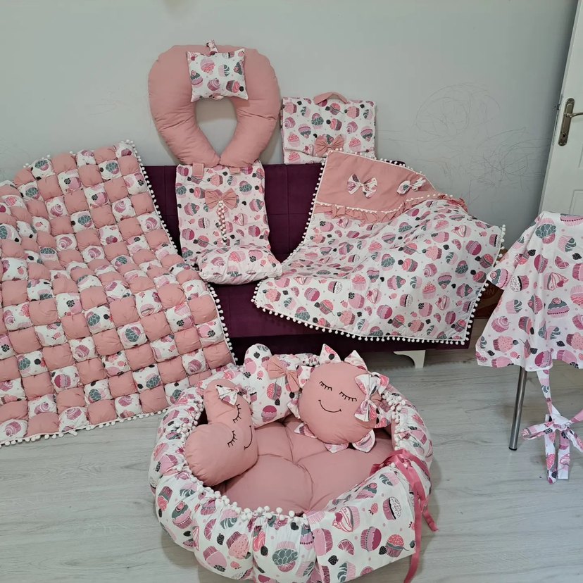 Pembe Desenli Bebek Uyku Seti ve Aksesuarları