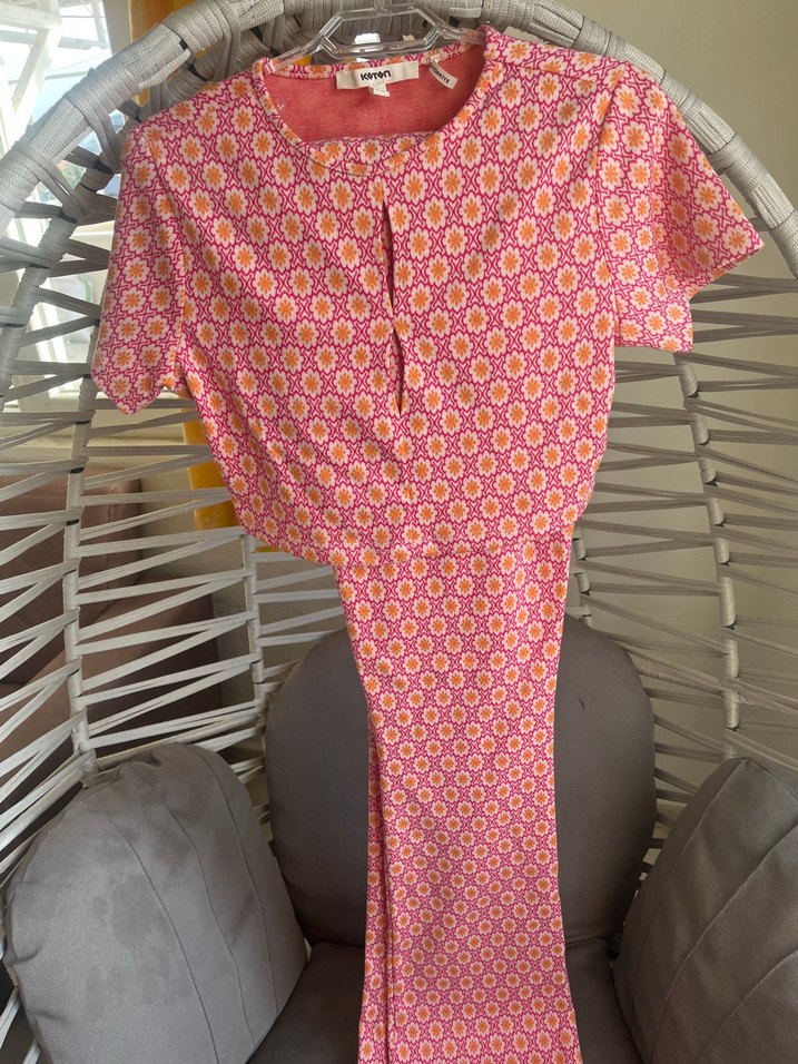 Uzun,, renkli tie-dye desenli, kısa kollu ve V yakalıdır. Sentetik kumaştan drapeli bohem vintage tarzda, günlük kullanıma uygun