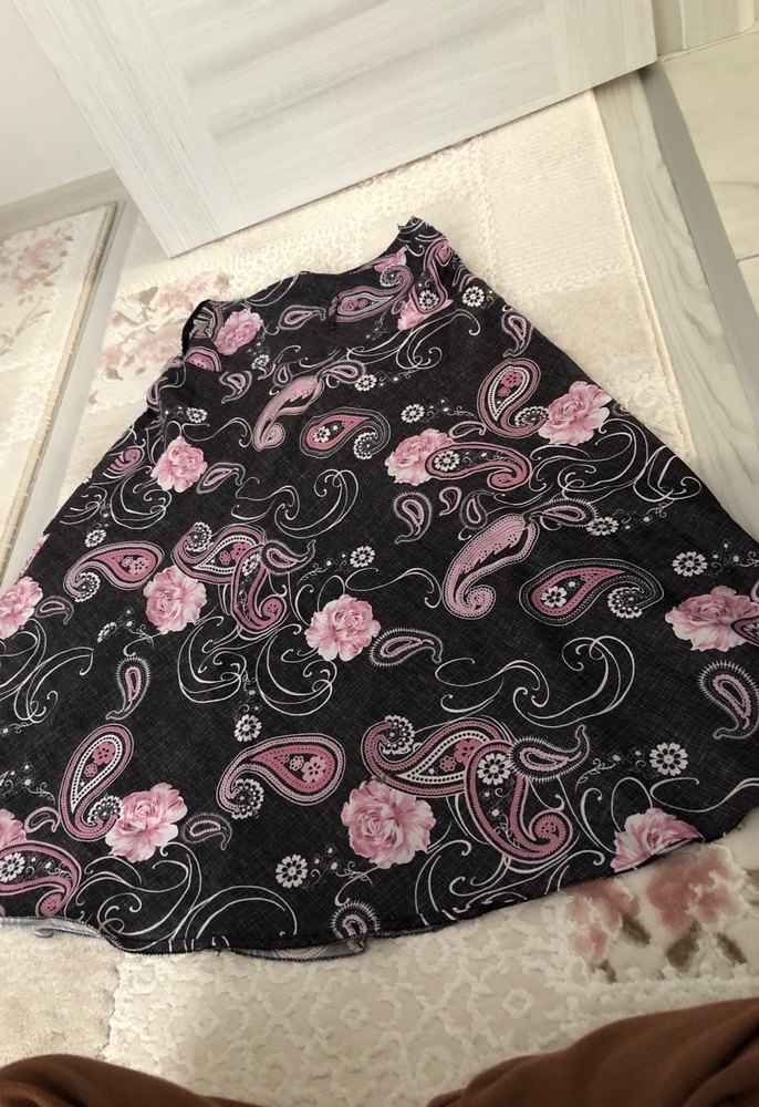 Pembe çiçek ve paisley desenli, ince sentetik kumaştan yapılmış, dantel detaylı bol kesim uzun etek Bohem tarz için uygundur.