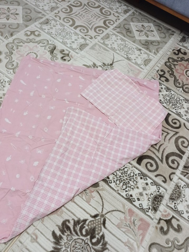 Pembe pastel renkte, çift taraflı desenli, yumuşak sentetik kumaştan çocuk battaniyesi. ️ yastık ve yorgan yüzü