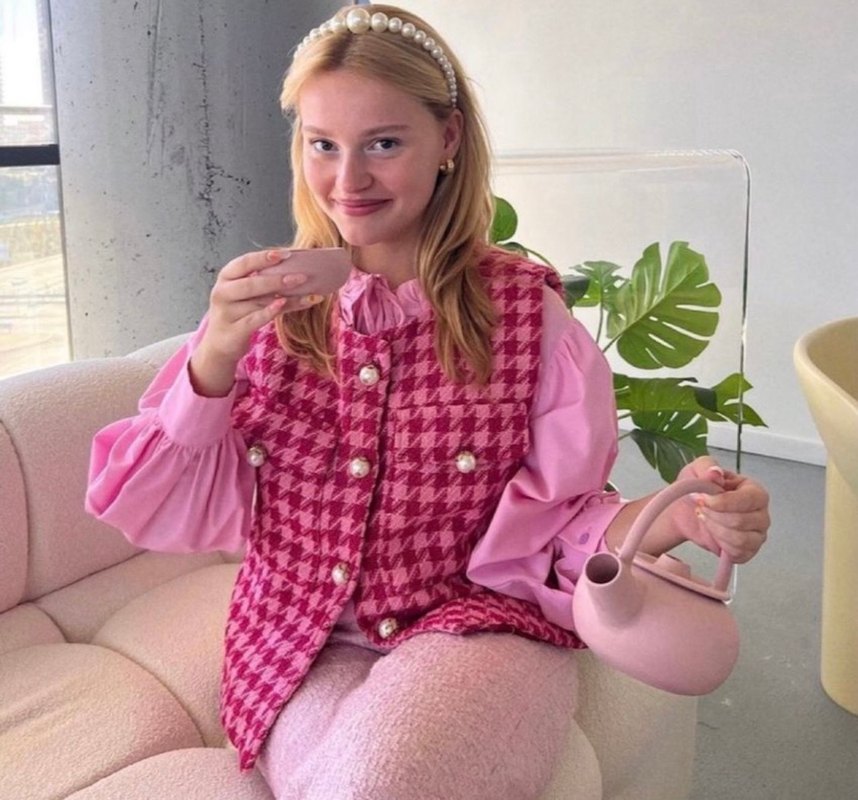 Pembe Desenli Düğmeli Yelek