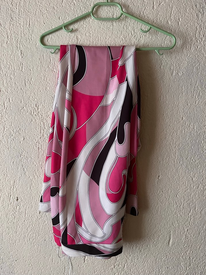 Pembe Desenli İpek Dokulu Kaın pantolon