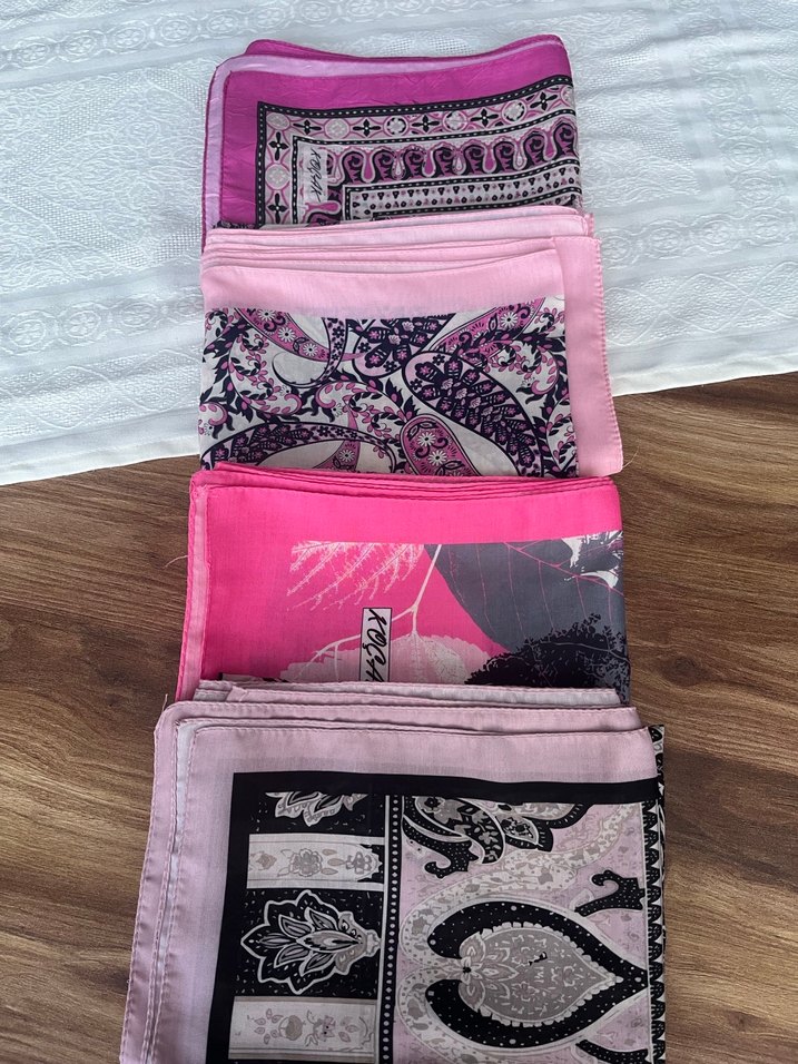 Koyu pembe renkli, ipek görünümlü, bohem tarzda, drapeli ve retro desenli şal pamuklu dur kayma terletme yapmaz adet fiyatı 250 TL dir