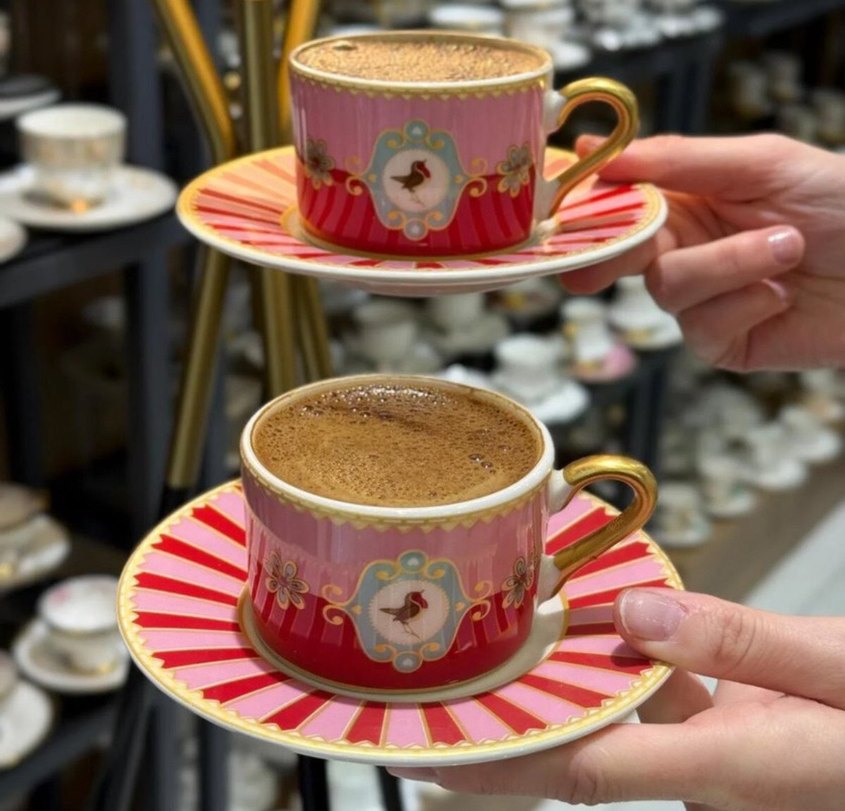 Pembe Desenli Kahve Fincanı ve Tabağı