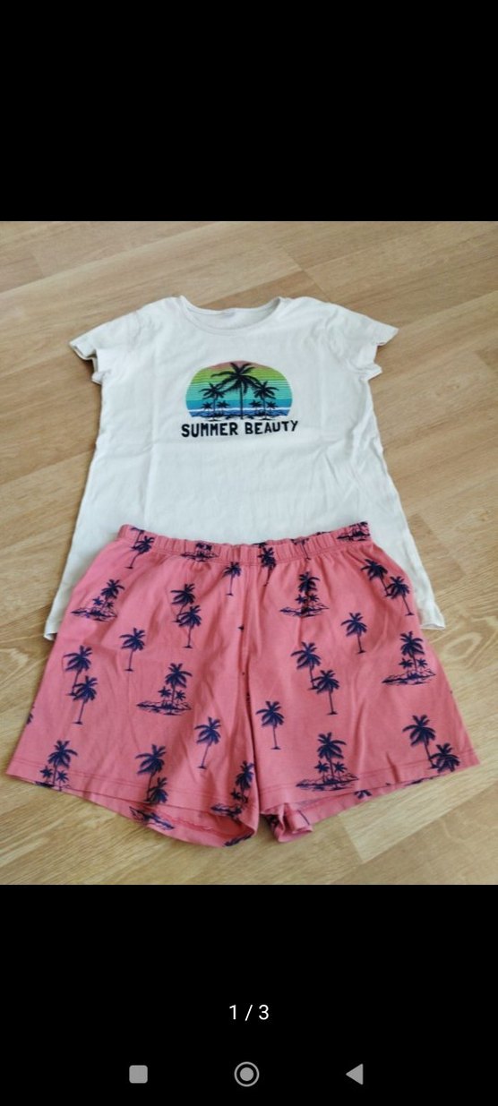 Pembe Desenli Kısa Kollu kız çocuk şortlu takım 11-12 yaş
