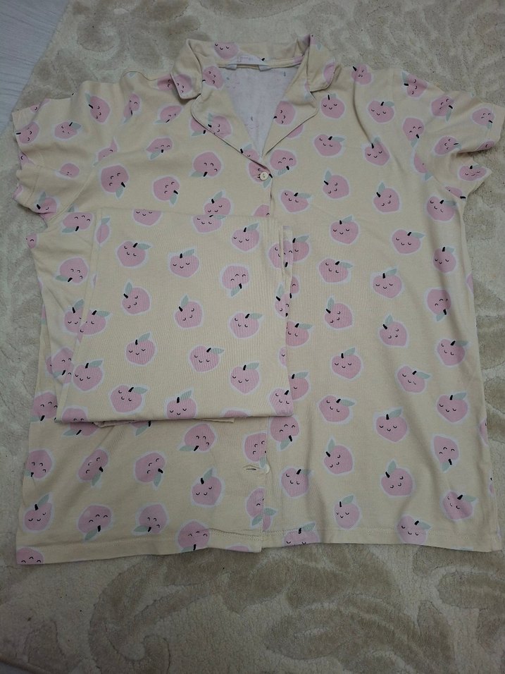 Kısa kollu, yakalı bikaç defa giyilmiş sıfır sayılır pijama takımı