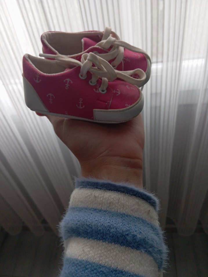 Pembe renkli, çapa desenli, cırt cırtlı kız bebek ilk adım ayakkabısı. Rahat ve renkli tasarımıyla günlük kullanıma uygundur.