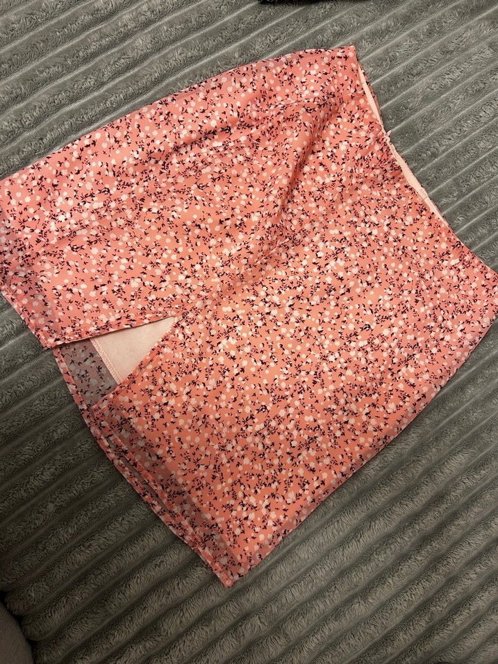 Pembe desenli, drapeli ve vücuda oturan midi mini etek. Sentetik kumaştan, rahat ve şık sokak stiline uygun günlük kullanım için ideal.