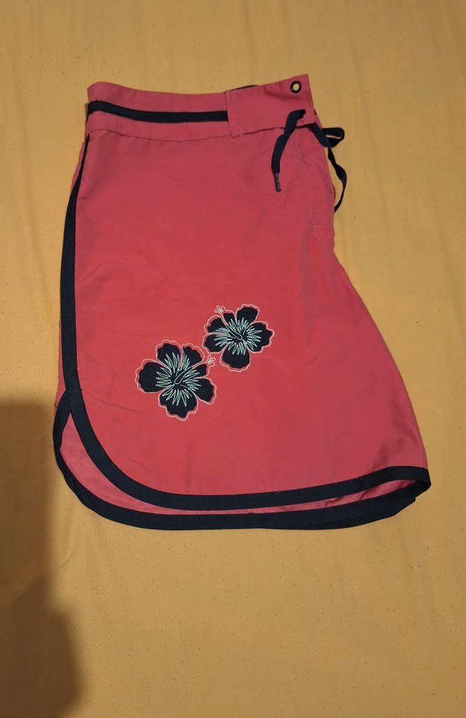 Pembe renkte, çiçek desenli, kısa boylu şort. Sentetik kumaştan, rahat ve trend bir kullanım ürünü.