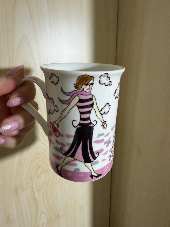 Pastel pembe renkte, şık kadın figürlü seramik kupa, içecekleriniz için uygun ☕.