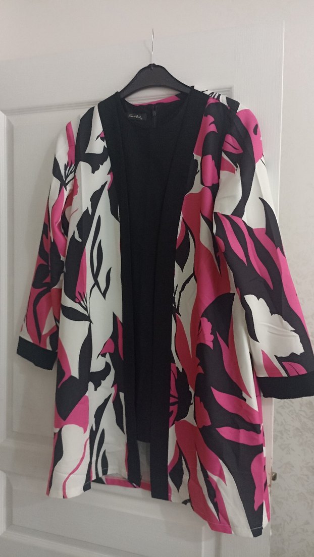 Kadınlar için pembe baskılı, uzun kollu ve bol kesim kimono. Drapeli tarzda, V yaka ve sentetik kumaştan üretilmiştir. Günlük kullanım için ideal, Paris esintili.
