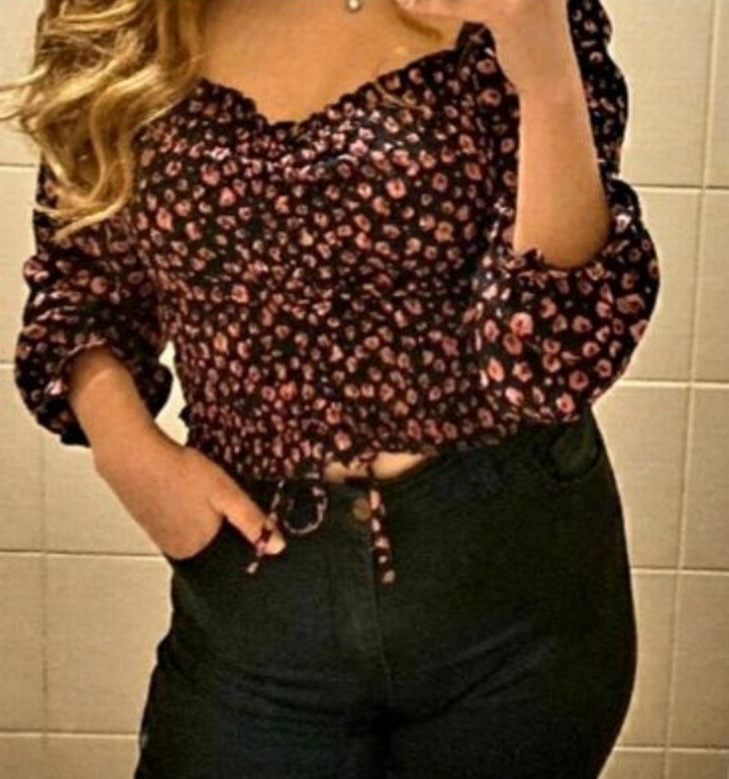 Uzun kollu, kayık yaka ve düğmeli ön detaylı, pembe tonlarında desenli, bohem tarzda, vücuda oturan bluz. Günlük sokak modasına uygun.