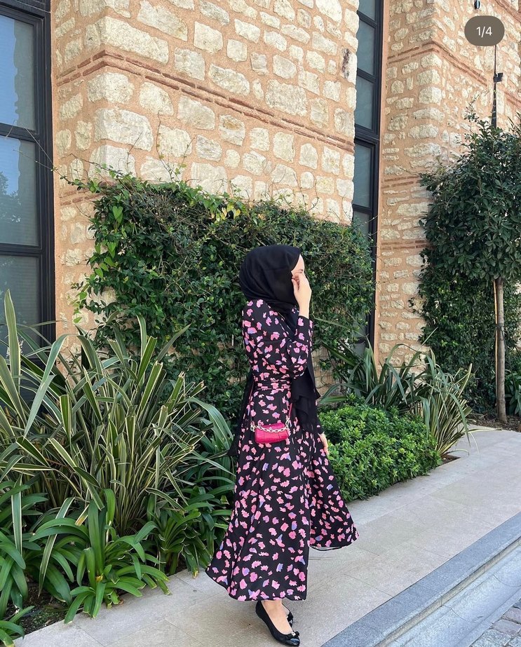Uzun, salaş kesim kadın elbisesi, uzun kollu, yüksek yakalı ve drapeli tasarıma sahip koyu pembe tie-dye deseniyle sentetik kumaştan üretilmiştir. Günlük sokak stili için uygundur.