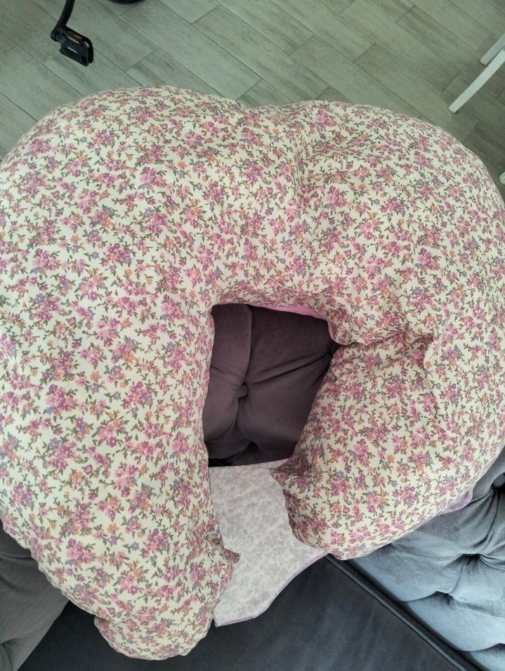 Pastel pembe renkte, hamilelik ve emzirme sırasında destek sağlayan yumuşak dokulu yastık.