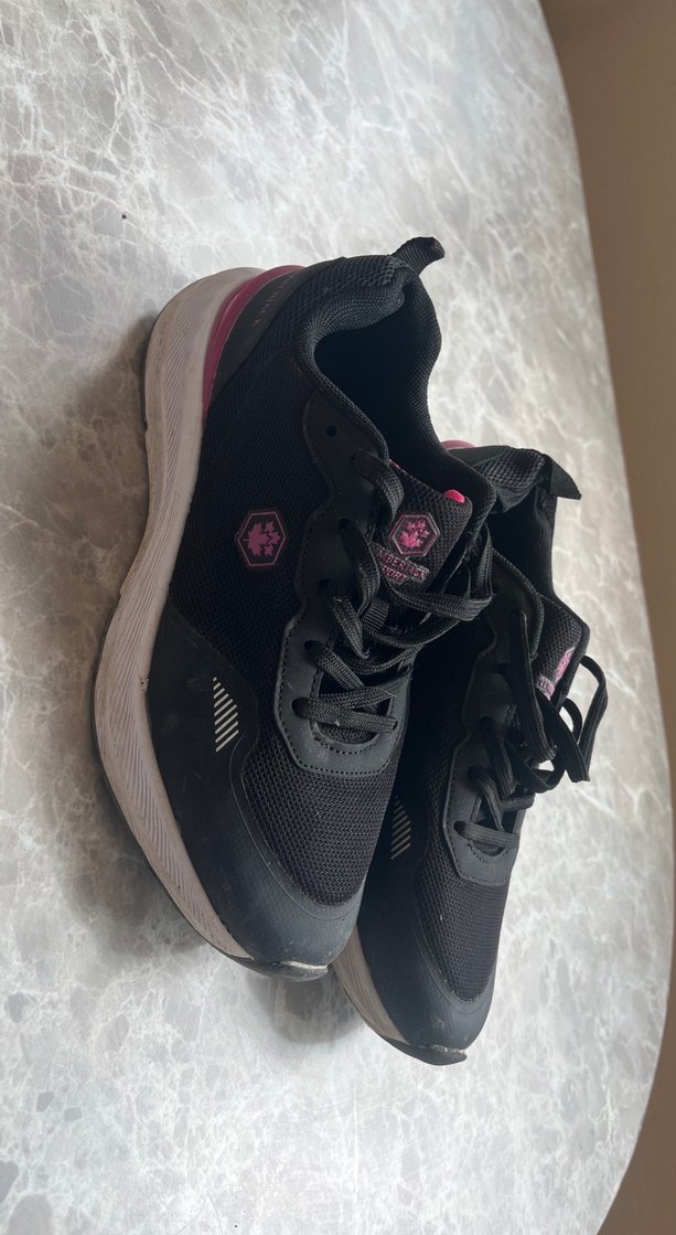 Pembe detaylı, bağcıklı kadın spor ayakkabısı, siyah baskılı ve stiletto topuklu, kauçuk tabanlı, spor ve günlük kullanıma uygun Ürün hediye sadece 1 kez giydm detaylı resim atılır ayağıma küçük geldiği için kullanmadım orjinal üründür flodan alındı.