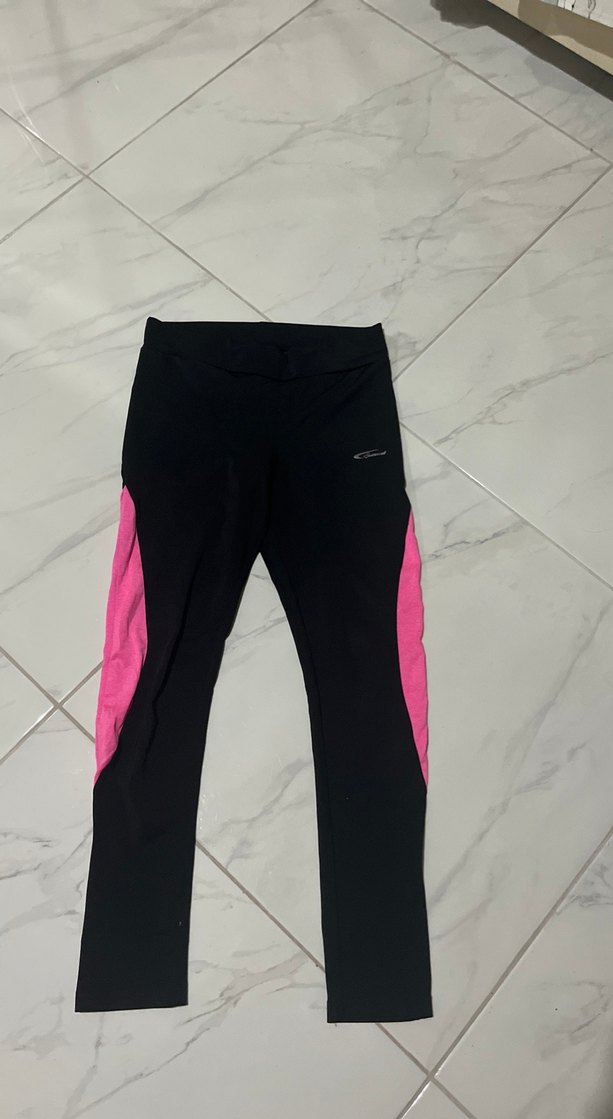 Darbeye uygun, elastik bel bantlı, koyu pembe yan detaylı siyah spor tayt. Rahat sentetik kumaştan, spor ve günlük kullanım için uygun. ♀️