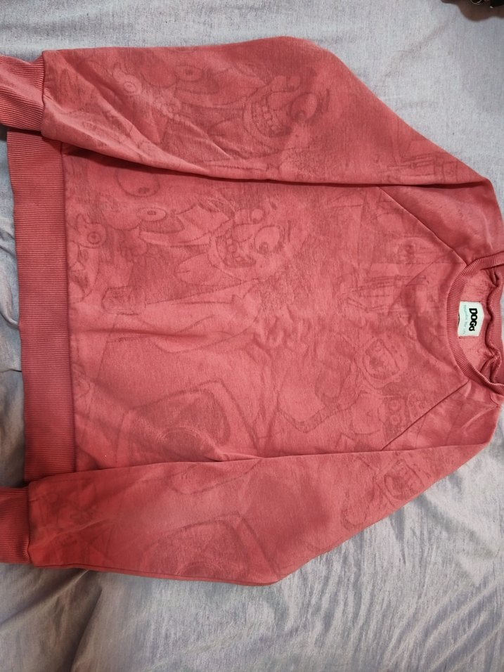 kadın sweatshirt, bisiklet yaka ve uzun kolludur.Silik baskılı (ilk alindiginda da silikti yani modeli oyle ) ve yumuşak kumaştan üretilmiştir. İki koltuk altı arası 49 cm dogo kazak Omuzdan uca boy 60 cm, m beden