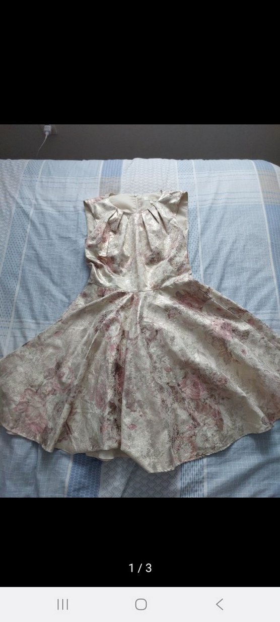 Pembe pastel tonlarında, drapeli ve straplez kesimli, rahat oturan diz hizası elbise.Vintage esintili modern klasik tarzda, düğün için uygun.Dar kalıp 164 boy 62 kiloyken giydim.